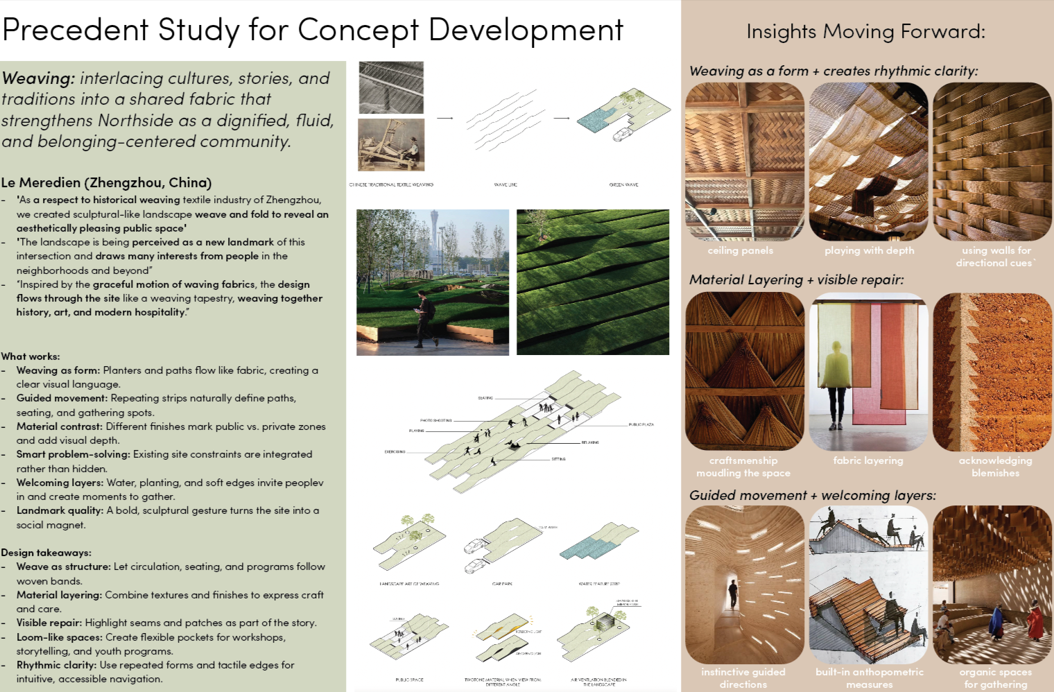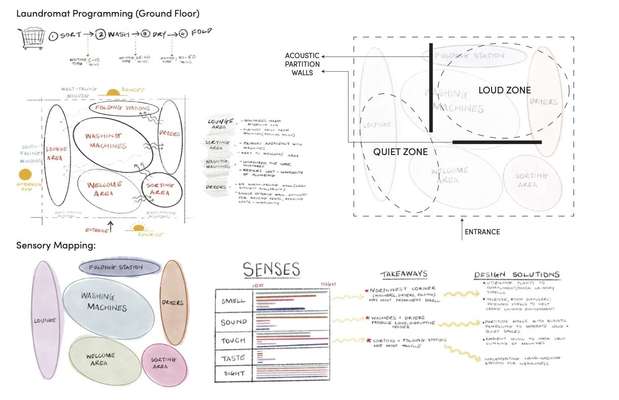 The phased proposal transformed the site into a community-centered hub featuring a laundromat, bakery with bulk store and café, and three apartments, all guided by the design concept The Weave. Grounded in universal design and sustainable strategies, the project felt especially meaningful because it responded to real voices and real constraints, bridging academic design with lived experience.